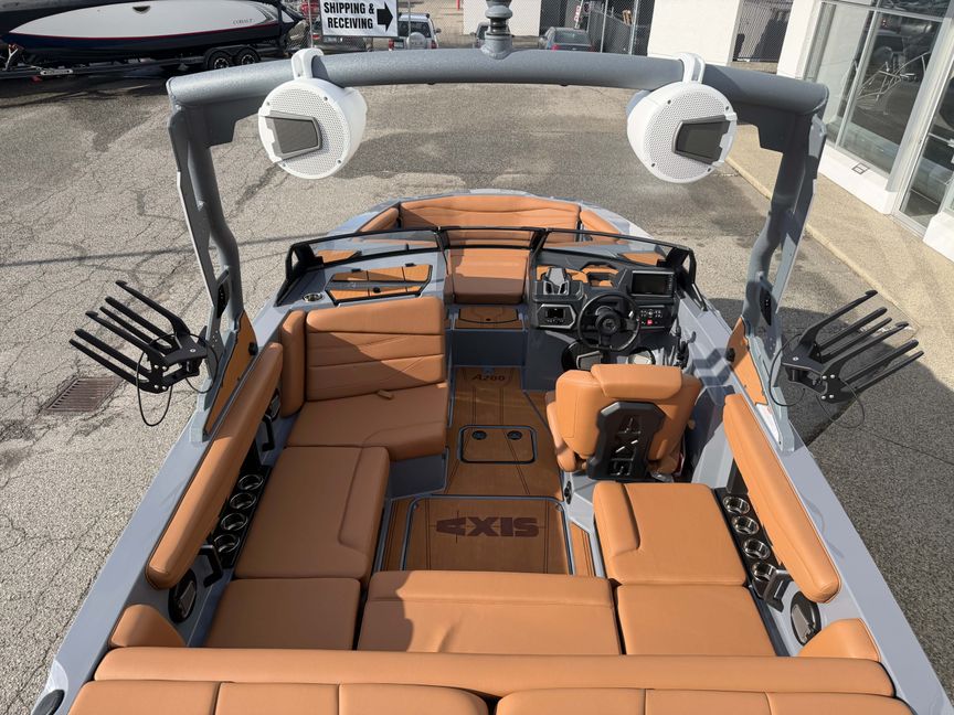 The Axis A200 is Axis most compact model ever, delivering big performance in a garage-friendly 20-foot package. Designed for riders and families who want full-scale wakesports action without the hassle, the A200 makes towing, trailering, and storing simple while still packing in bold style and everyday usability. Inside, you’ll find smart storage solutions, hinged cushions, and a clean, modern lounge built to keep your crew comfortable and your gear within reach.