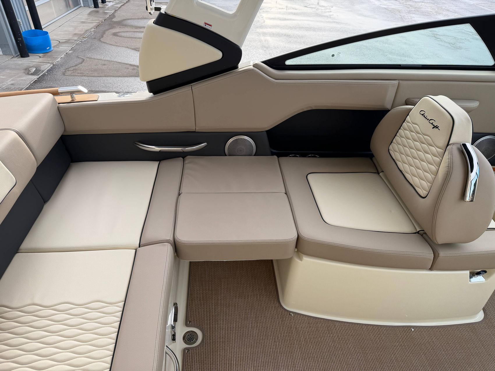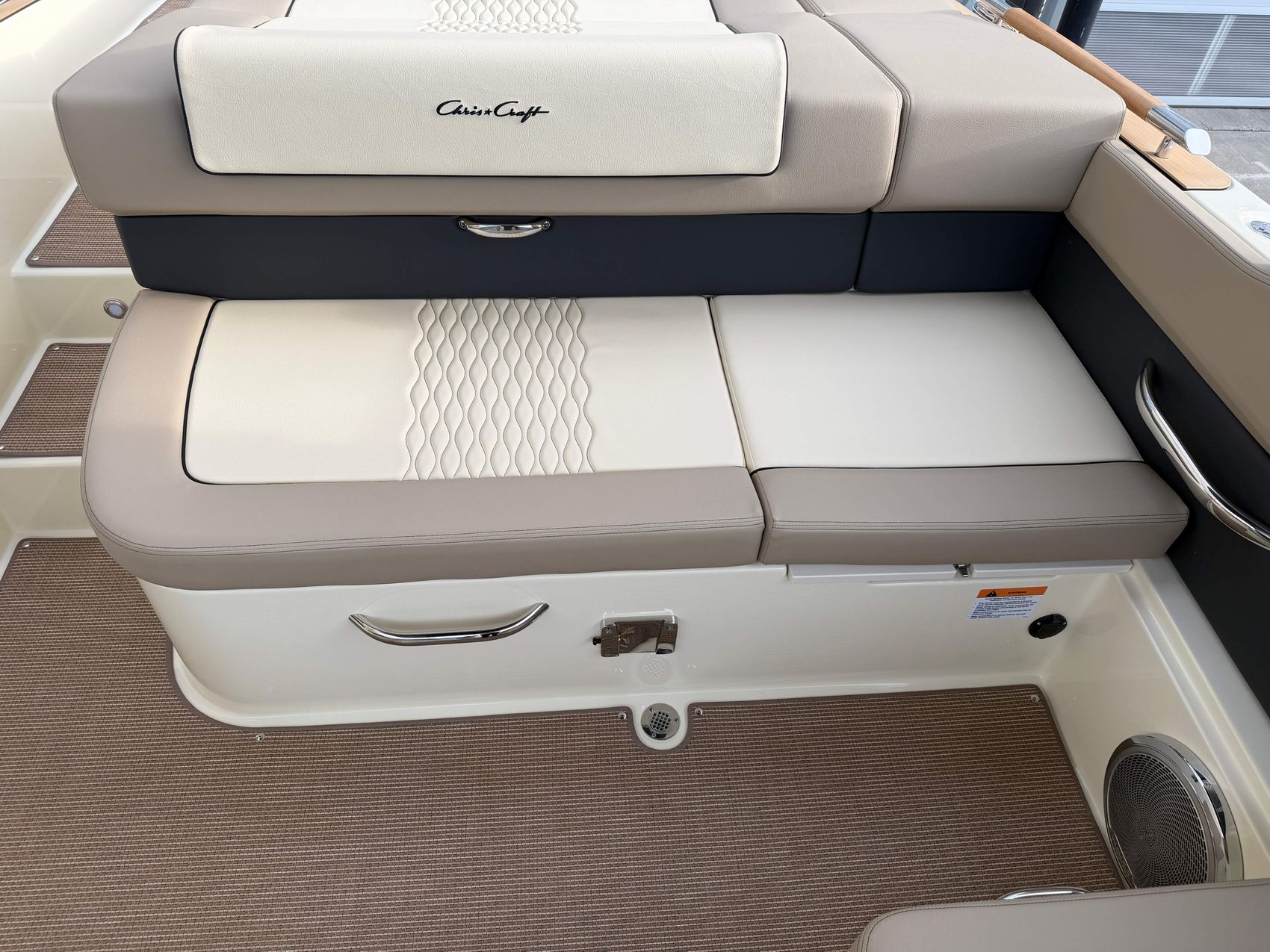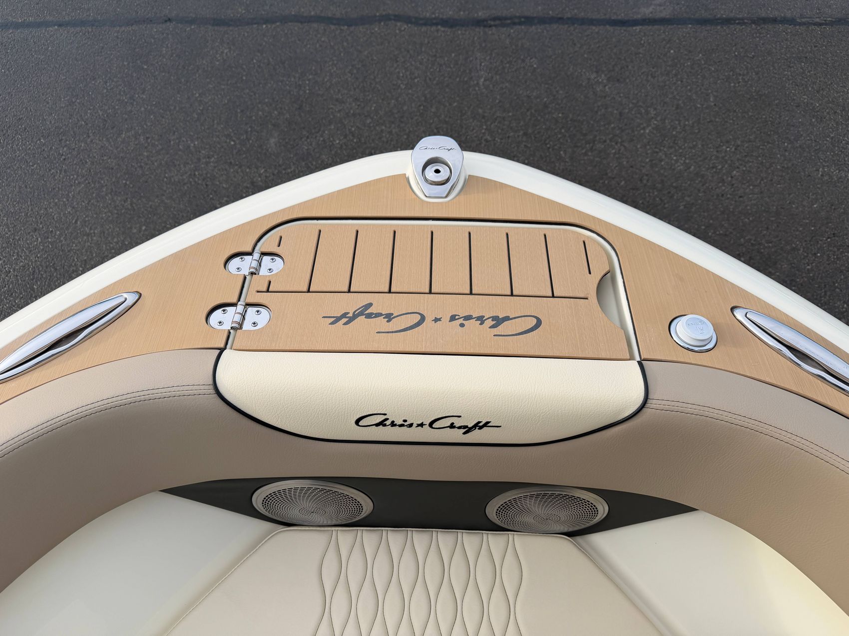 Premium Audio System - Upgraded speakers with custom Chris-Craft stainless steel grills, aft cockpit speakers, 10" subwoofer, and amplifier