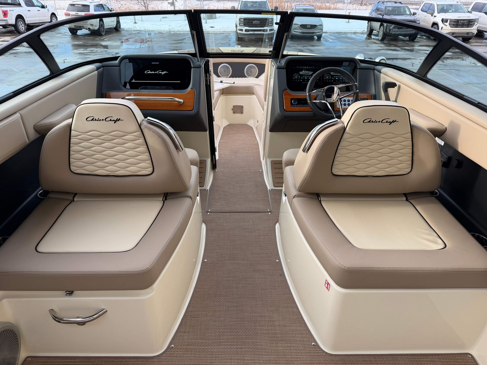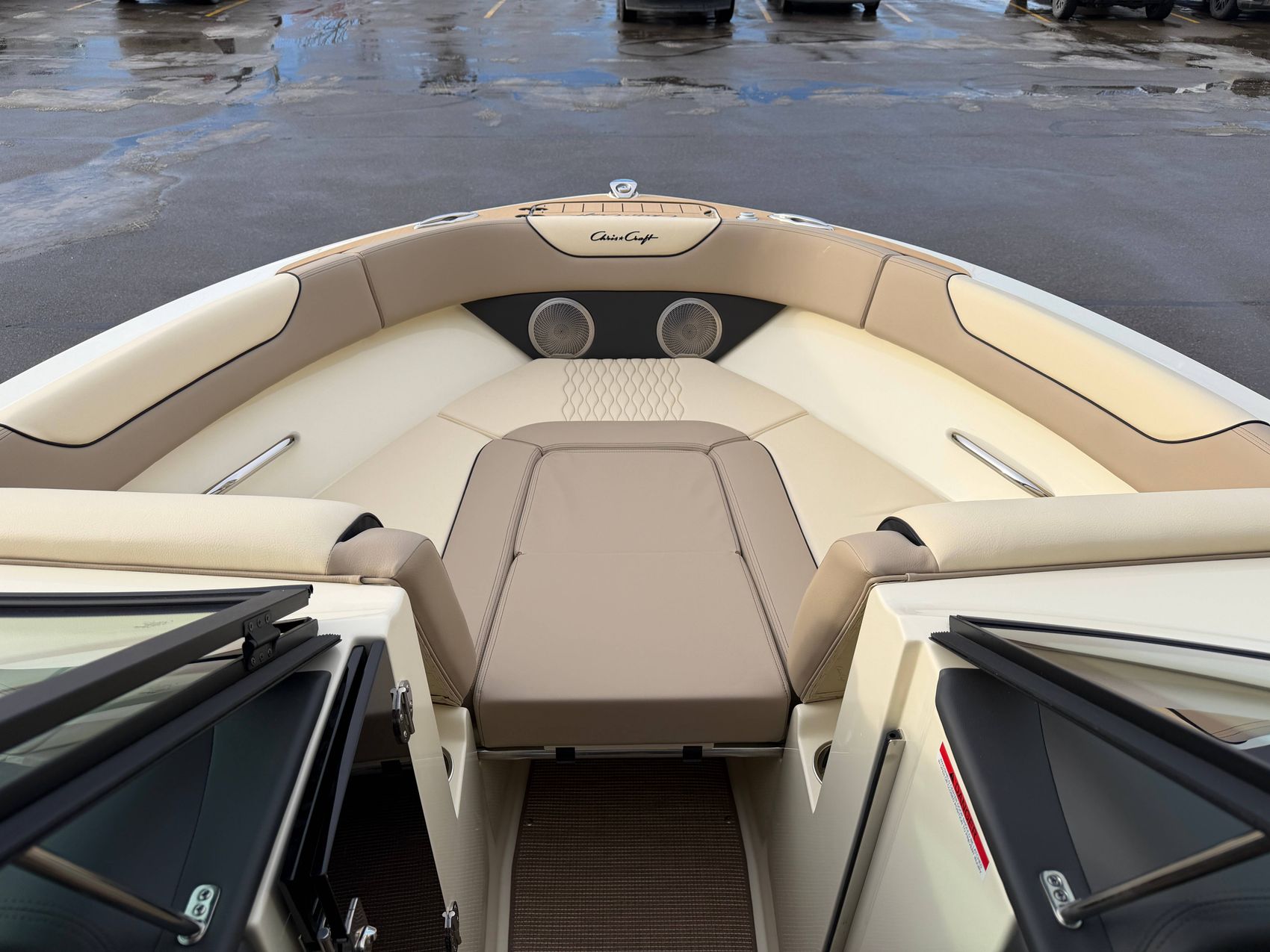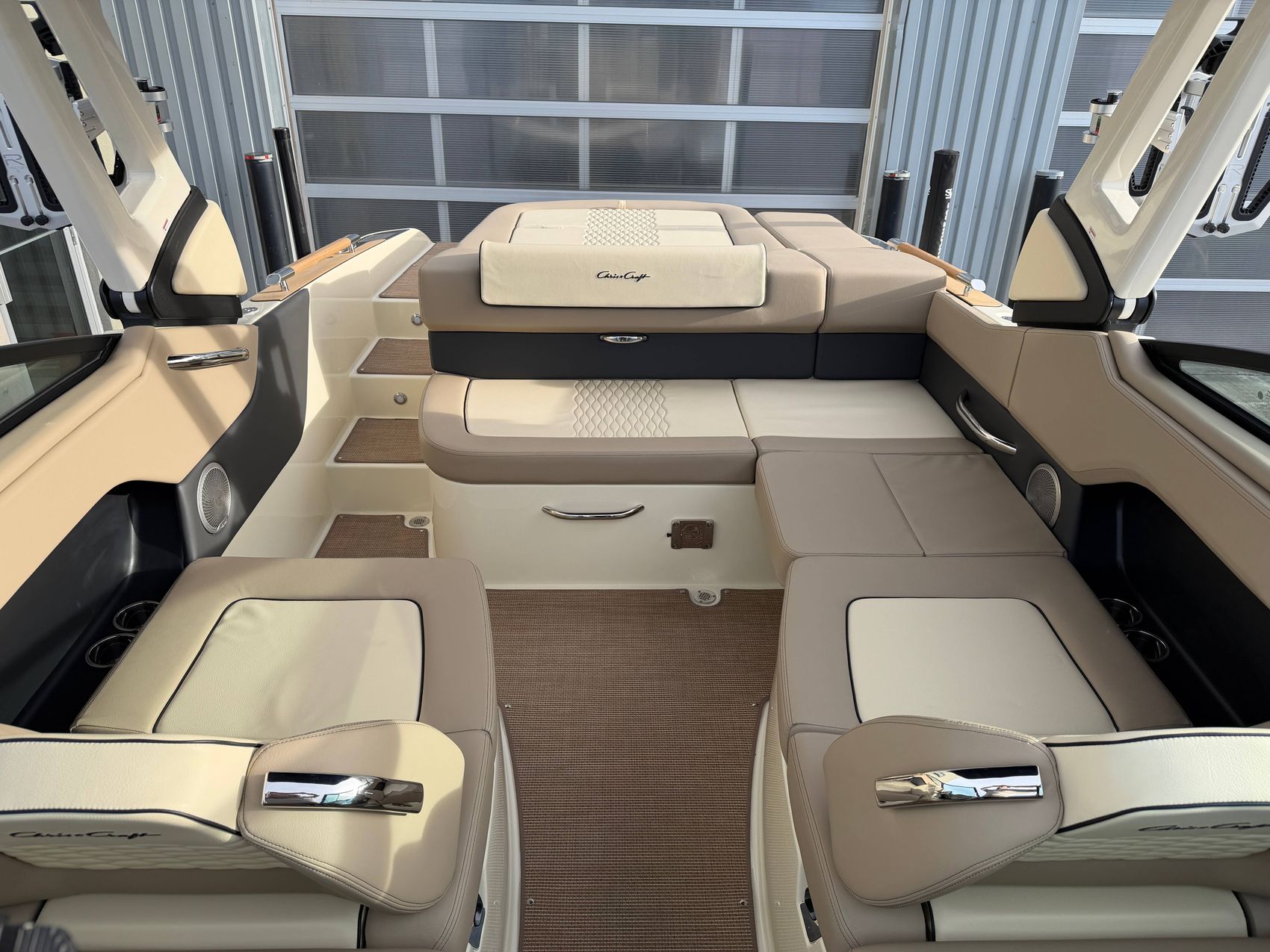 Premium Audio System - Upgraded speakers with custom Chris-Craft stainless steel grills, aft cockpit speakers, 10" subwoofer, and amplifier