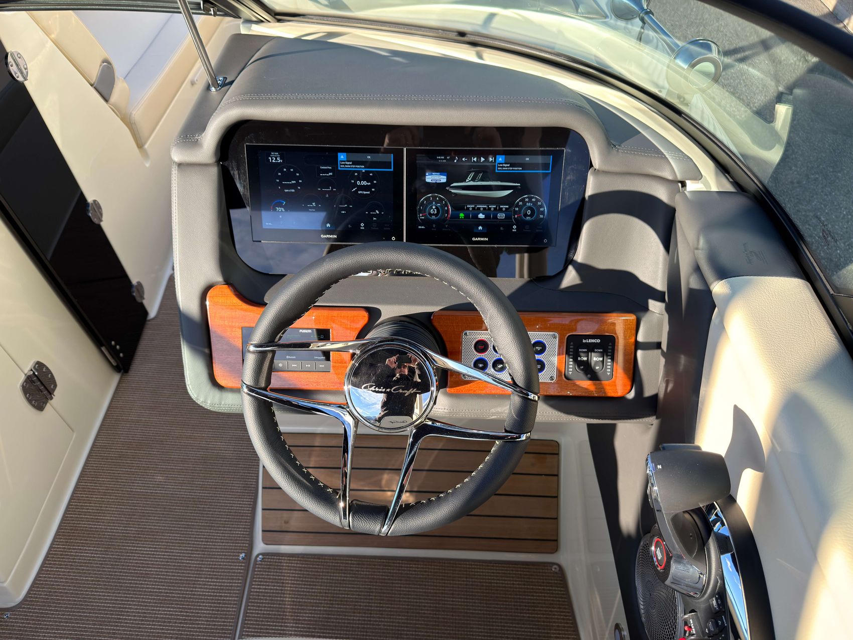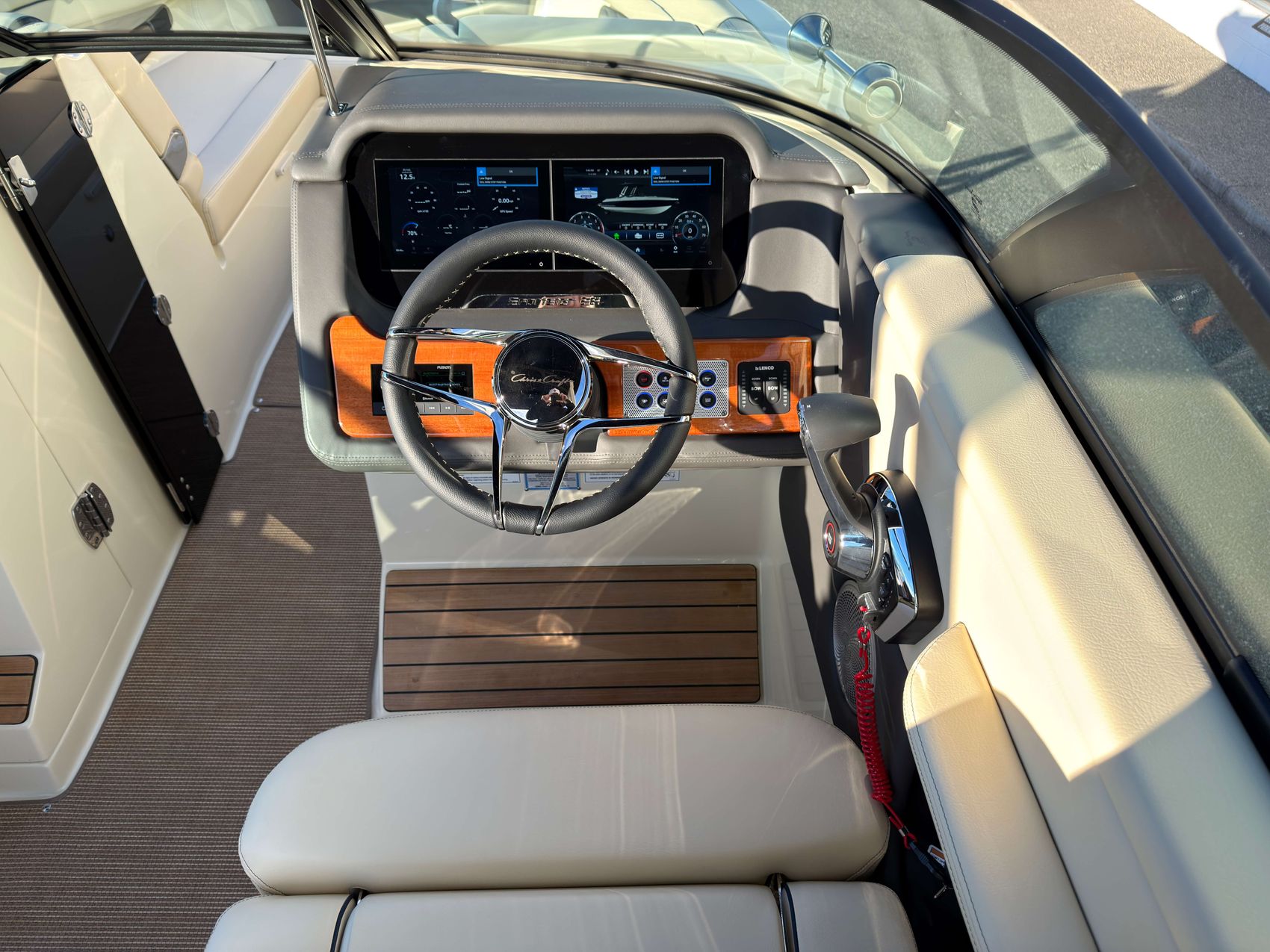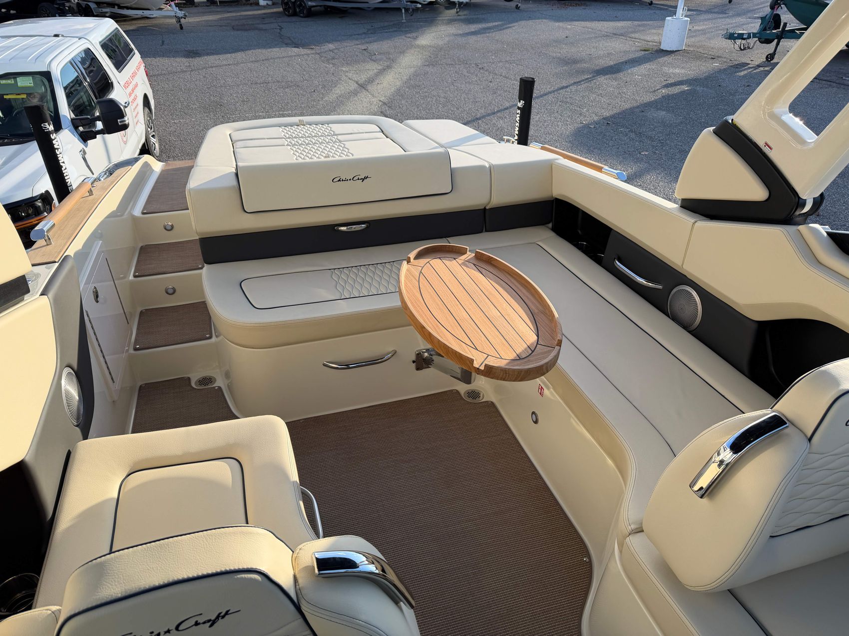 Premium Audio System - Upgraded speakers with custom Chris-Craft stainless steel grills, aft cockpit speakers, 10" subwoofer, amplifier and transom remote.