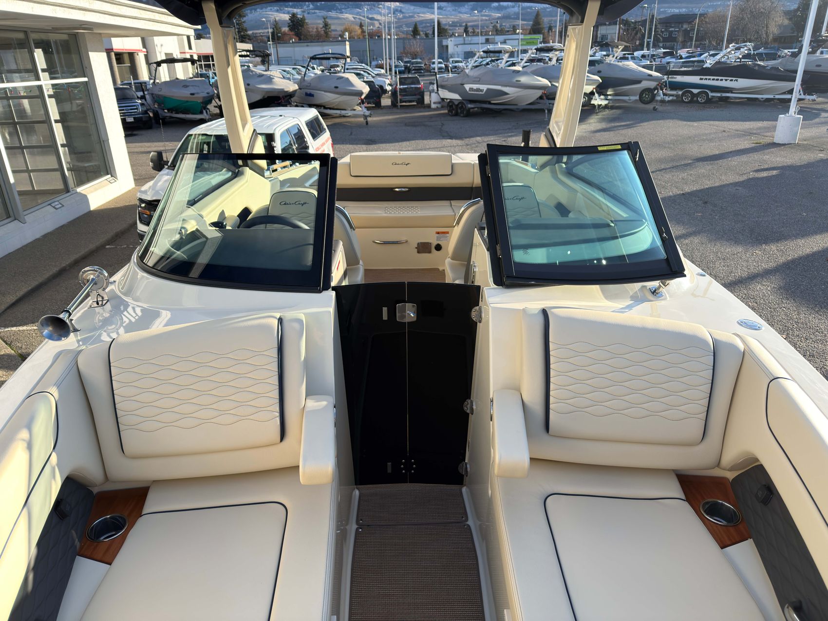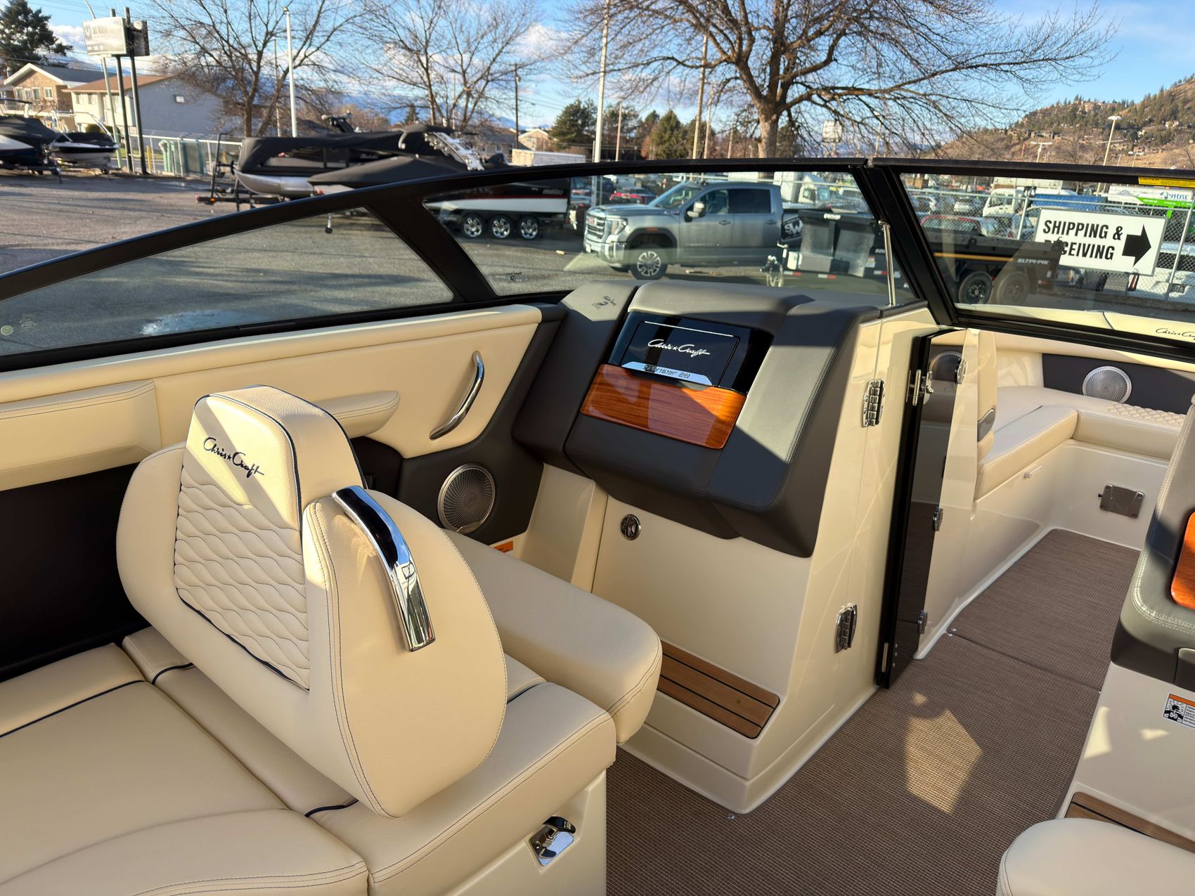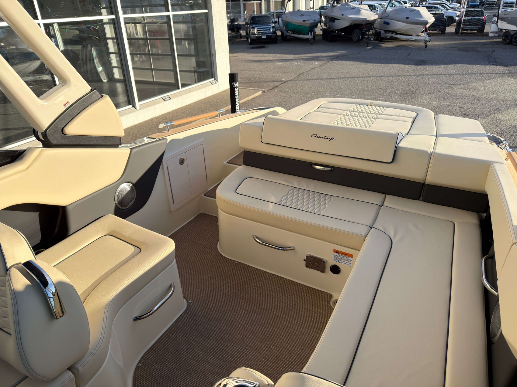 Premium Audio System - Upgraded speakers with custom Chris-Craft stainless steel grills, aft cockpit speakers, 10" subwoofer, amplifier and transom remote.