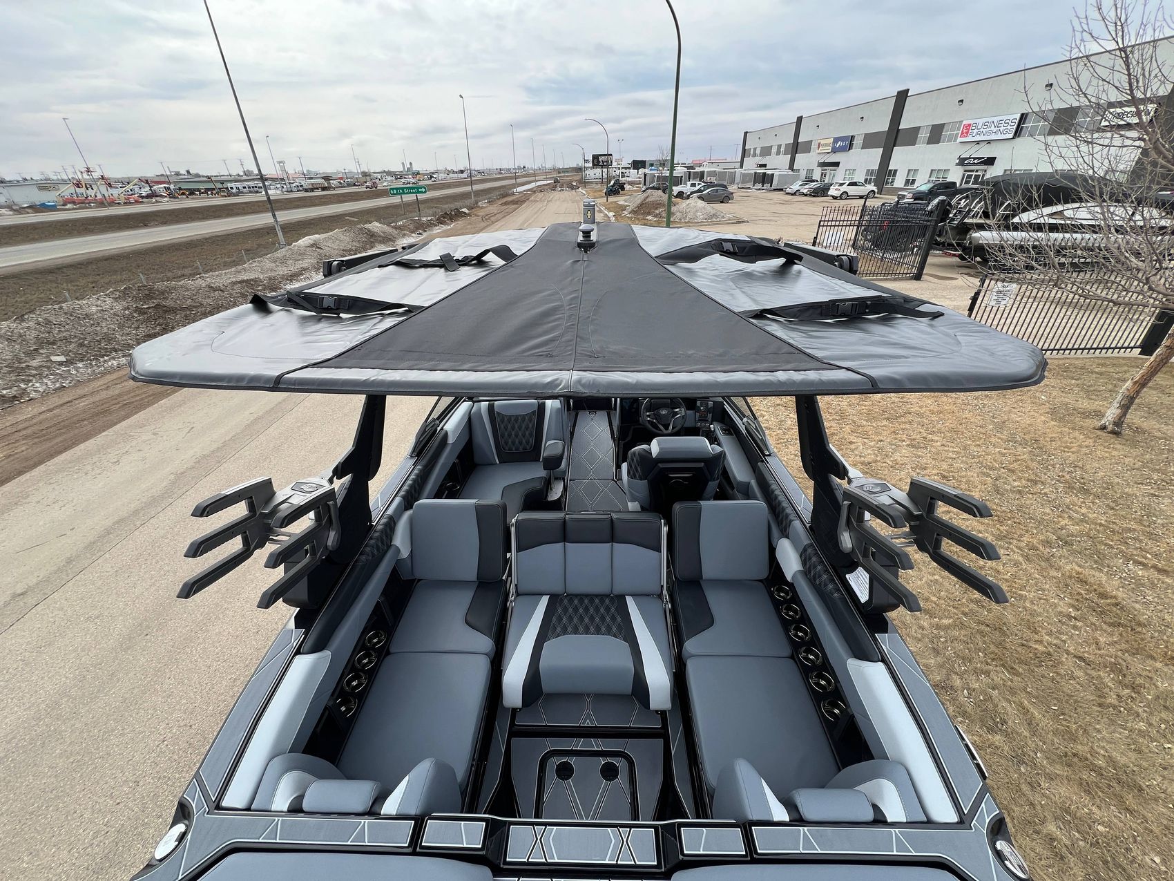 PTM Dual Coverage Bimini - w/Rope and Surf Board Storage