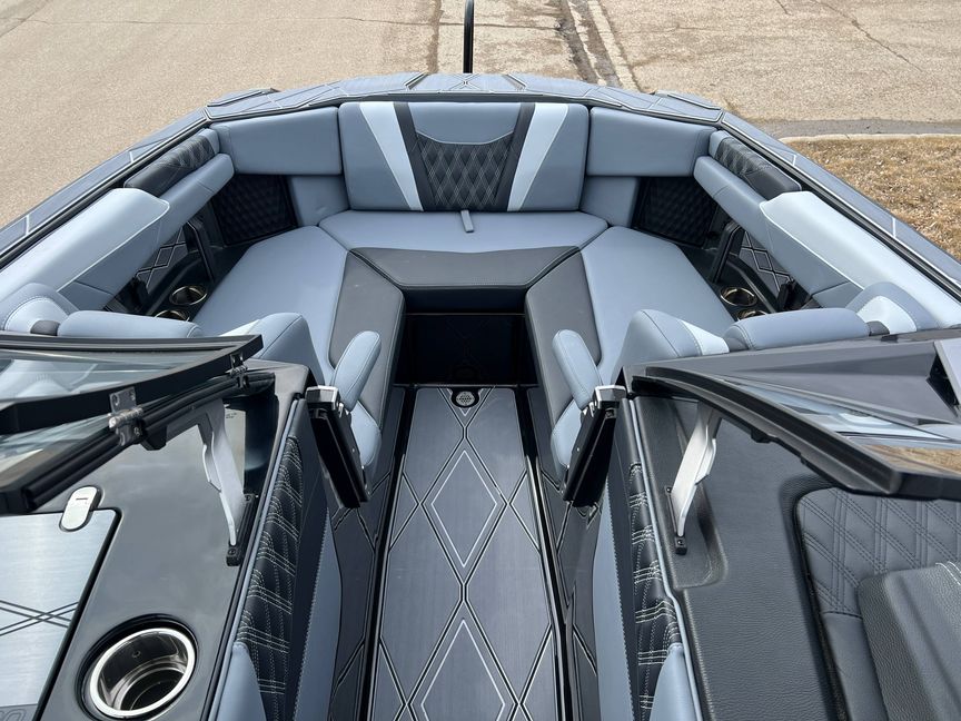 Engineered for perfection, Surf Gate® Fusion is seamlessly integrated into the M-Line Hull, creating an ultra-sleek exterior and the cleanest, most customizable surf swells in the industry. Step aboard and experience Malibu's hallmark innovations and refined craftsmanship at every touchpoint—from the Ascend Pro Tower™ and Raise & Laze™ Arm Rest to the reimagined walkthrough bow, Max-Relax™ Sundeck Loungers, and custom triple-layer Soft Grip flooring.