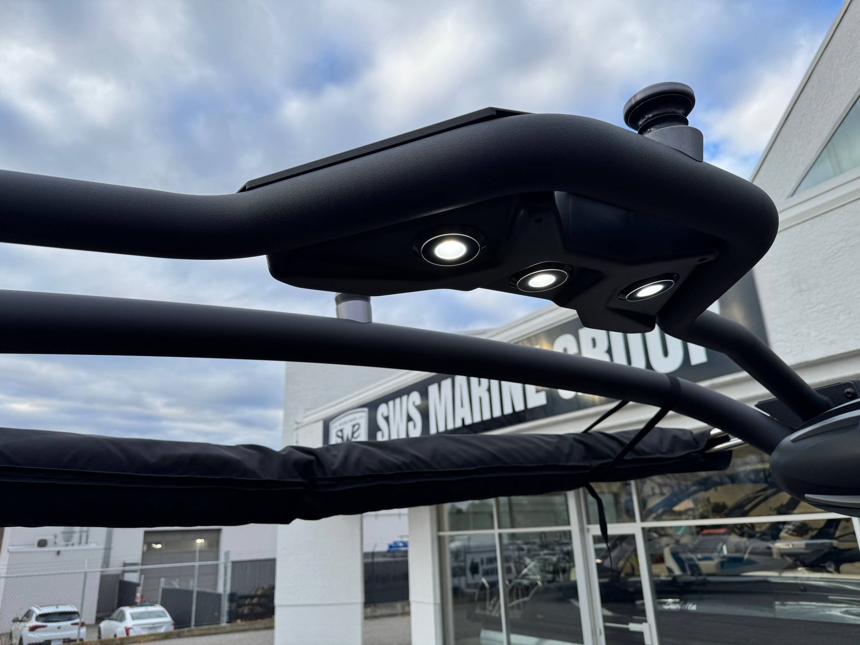 CS Boat Cover with Anti-Pooling System 3 and Swimboard Cover