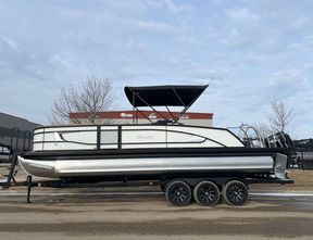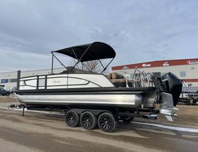 2023 BARLETTA LUSSO L25UE ULTRA ENTERTAINER, MERCURY 300HP VERADO V8 WITH 42 ENGINE HOURS, ON A TRIPLE AXLE BOATMATE TRAILER KEY OPTION... READ MORE